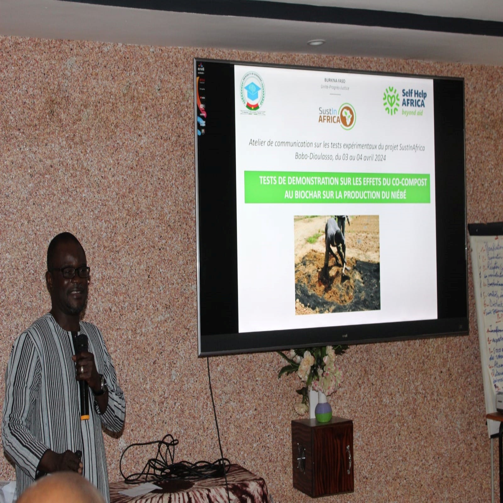 L’équipe du projet SustInAfrica de l’Université Daniel Ouezzin Coulibaly (UDOC) en collaboration avec celle de l’ONG Self Help Africa (SHA) ont tenu les 02 et 03 avril 2024 à Bobo-Dioulasso un atelier de communication sur la conduite des tests expérimentaux réalisés dans la commune de Satiri. Une commune située à une quantaine de kilomètres de Bobo-Dioulasso.